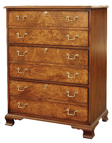 DESCRIPTION: Three file drawers, cylinder lock in each drawer, interlocking anti-tip drawer slides; plinth base standard. Mahogany and mahogany veneer. Type “A” solid brass hardware.