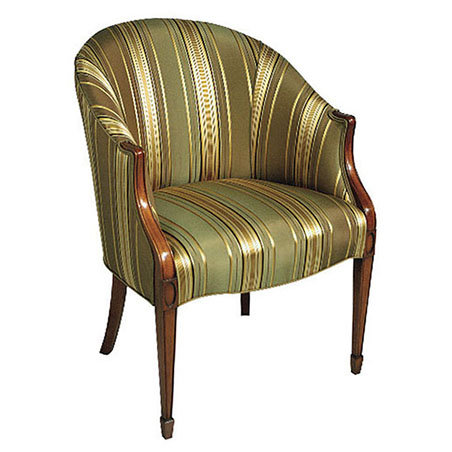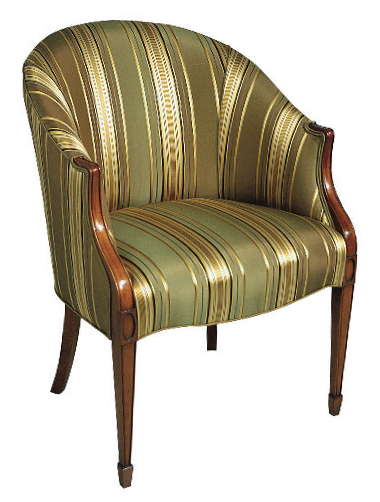 DESCRIPTION: Mahogany chair has wood arms, cabriole legs and slipper foot. Available with optional full nail trim.